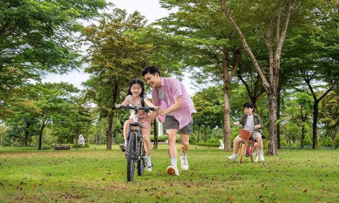 Ngay từ đầu, chủ đầu tư chú trọng công viên, cảnh quan, đường dạo bộ và bãi đỗ xe sinh thái. Mục tiêu là tạo tổng thể hài hòa giữa kiến trúc, thiên nhiên và con người.
